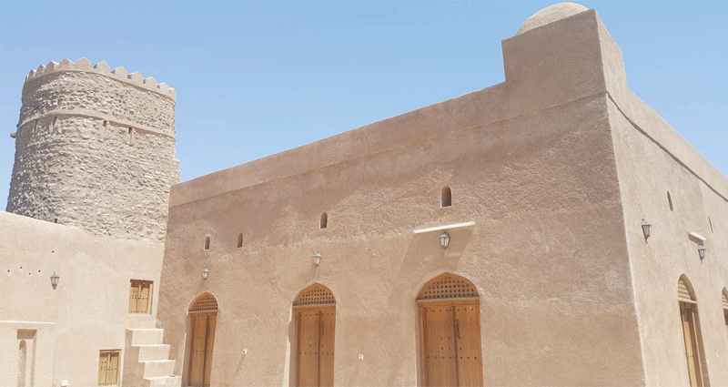 روائع المساجـد الأثريـة العـمانية - مسجد حجرة البراشد بنيابة سناو: محراب يشبه المرمر وستة أركان دائرية وأقواس عالية الارتفاع
