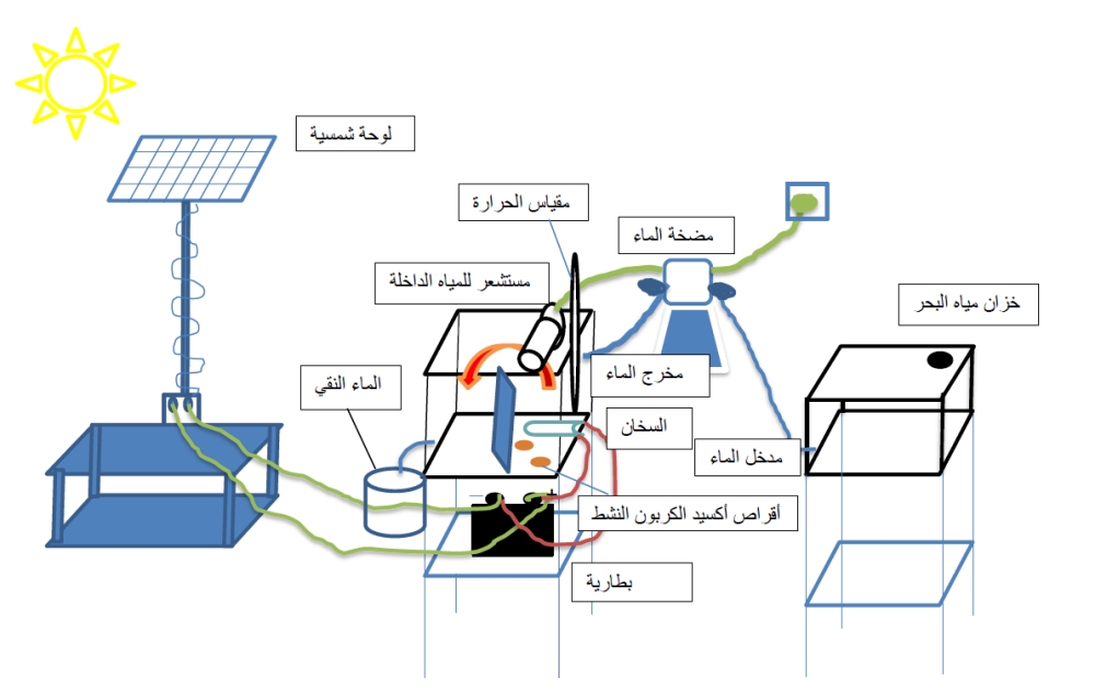 توصل مشروع أكسيد الكربون المنشط لتحلية وتنقية المياه باستخدام الطاقة الشمسية إلى إنتاج أقراص مصنوعة من مادة أكسيد الكربون المنشط وهو منتج صديق للبيئة محضر من المخلفات الصلبة والمخلفات الزراعية التي تنتج بكميات كبيرة بعد تحويلها إلى الكربون المنشط ثم أكسدته واستخدامه في تحلية وتنقية المياه، وهو أحد المشاريع الفائزة في جائزة صلالة للمياه والصرف الصحي. وبناء على ما تم التوصل إليه من نتائج فإن من مميزات أكسيد الكربون المنشط أنه تم استخدامه واختباره في خفض درجة غليان المياه باستخدام كميات بسيطة لأول مرة، ويقوم بحل مشاكل بيئية عديدة منها معالجة المخلفات الصلبة للصرف الصحي والمخلفات الزراعية التي يتم إنتاجها بشكل يومي وبكميات كبيرة وتحويلها إلى منتج صديق للبيئة فاعل في تنقية المياه، وسوف يكون للمشروع دور في حل مشكلة التملح في المناطق الزراعية الساحلية إذا تم توسيعه، ويوفر المنتج الطاقة المستهلكة في تحلية المياه ويعتمد على الطاقة الشمسية كمصدر نظيف ومستدام، وسوف يساهم في دعم الاقتصاد الوطني إذا تم تسويقه وترويجه محليا وعالميا. ونجح هذا المنتج الجديد الصديق للبيئة من أكسيد الكربون المنشط في إنتاج مياه عذبة مع درجة غليان أقل، وكمية أقل من الطاقة ووقت أقصر، هذه طريقة واعدة اقتصاديًا وفعالة مع العديد من المزايا مثل التكلفة المنخفضة ودورة الحياة الطويلة وسهولة التجديد والحفاظ على الطاقة. وأبرز أهداف المشروع إعادة تدوير المخلفات وتحويلها إلى كربون منشط تحت ضوابط علمية كيميائية وفيزيائية باستخدام فرن حراري خاص وإجراء التحاليل العلمية للتأكد من جودة ونجاح عملية التنشيط، تم تحضير الكربون المنشط في هذه الدراسة من الحمأة الصلبة والنفايات الزراعية والمواد التجارية الأخرى، حيث تم تحضير الكربون المنشط من خلال عمليتين مهمتين، العملية الأولى التحلل الحراري للنفايات الصلبة لمدة ساعتين تحت درجة حرارة عالية عند 700 درجة مئوية تحت تدفق غاز النيتروجين 150 دقيقة / مل، أما العملية الثانية فكانت التنشيط الفيزيائي الكيميائي باستخدام هيدروكسيد البوتاسيوم (1: 1) تحت تدفق غازات النيتروجين وثاني أكسيد الكربون 150 مل / دقيقة لمدة ساعتين. بعد ذلك، تم تحليل الكربون المنشط باستخدام SEM وEDX لدراسة المسامية ومساحة السطح والتركيب الكيميائي. كما هدف المشروع إلى أكسدة الكربون المنشط باستخدام طريقة Hammer المعدلة وفحصه ثم استخدامه لخفض درجة غليان المياه وبذلك خفض الطاقة المستهلكة للتبخير، وبعد التجارب المخبرية أثبت المنتج كفاءته في خفض درجة غليان المياه إلى ٣٤ ± ٣ درجة مئوية، كما أثبت سرعة معدل إنتاج المياه إلى ثلاثة أضعاف في وقت أقل، وتم تصنيع حوض مائي ذكي لتحلية المياه باستخدام الطاقة الشمسية وبإضافة أقراص الكربون المنشط لتنقية وتسريع عملية التبخير لمياه البحر، وبعد فحص المياه مختبريا تم إثبات نقاء المياه موافقتها لمقاييس الصحة العالمية.