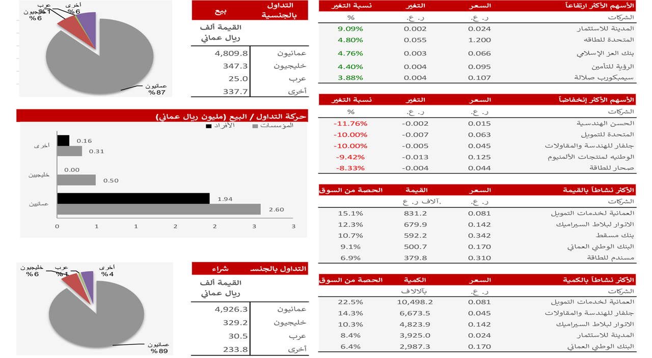 محليًا، حيث تم افتتاح معظم الأنشطة الاقتصادية على مراحل. وقد شهد السوق المحلي انتعاشًا مع تحسن معنويات المستثمرين. كذلك شهد الأسبوع الماضي، إعلان الحكومة عن رؤية عُمان 2040 والذي أعطى أيضا شعورا إيجابيا لدى المستثمرين. ننصح المستثمرين بمراقبة الإعلانات على الصعيد الاقتصادي الكلي والتي يمكن أن توفر المزيد من الدعم للأسواق.