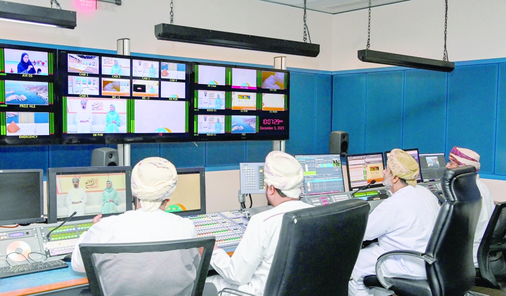 وتعمل جميع القنوات التلفزيونية على بثّ موادها البرامجيّة على مدار الساعة؛ حيث بلغ عدد ساعات البثّ للقناة العامّة، وقناة عُمان مباشر، والقناة الرياضيّة، والقناة الثقافيّة، 8 آلاف و784 ساعة تنوّعت بين المواد والبرامج الإخباريّة، والمواد والبرامج التّنمويّة، والمواد والبرامج الثّقافيّة، والمواد وبرامج الأطفال، ومواد وبرامج المرأة، ومواد وبرامج الشّباب والرّياضة، والمواد والبرامج الترفيهيّة والفنيّة، وفقرات الرّبط وعرض البرامج. وبلغ عدد البرامج الإذاعيّة المقدّمة عبر الإذاعة العامّة وإذاعة القُرآن الكريم، وإذاعة الشّباب والإذاعة الإنجليزية 26 ألفًا و352 ساعة تنوعت بين الثقافيّة والتنمويّة والأطفال والمرأة والشّباب والرّياضة والترفيه والفن بالإضافة إلى برامج إذاعة القُرآن الكريم والموسيقى الكلاسيكية، كما بلغ إجمالي البرامج المباشرة والمسجّلة للإذاعات والقنوات الإلكترونية الخاصة التي تم بثّها ألفًا و813 برنامجًا.