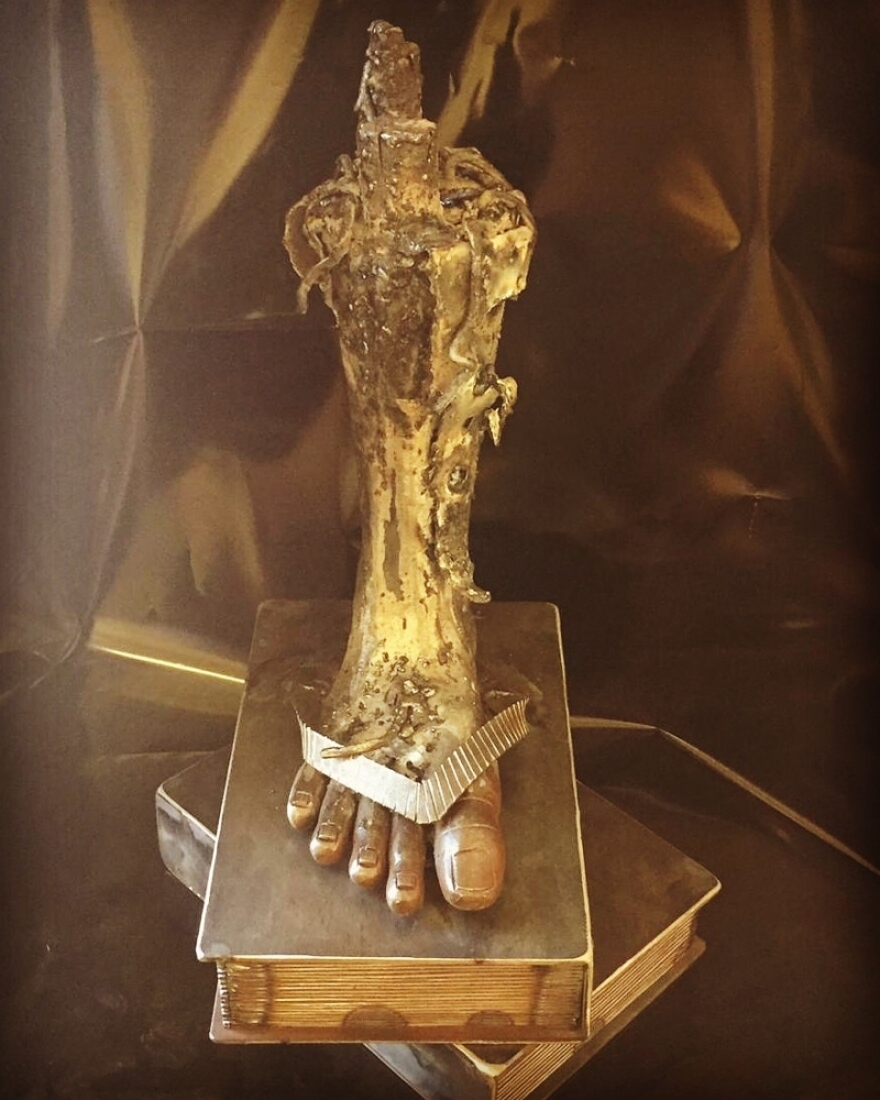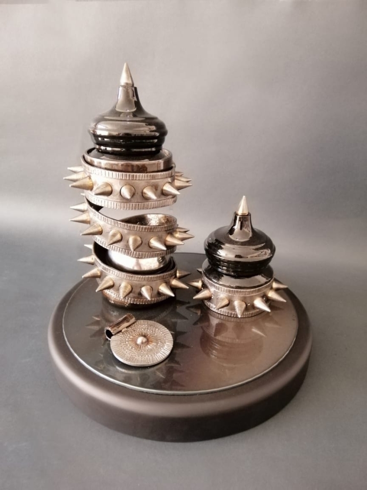 «فن السكراب» مجسم لدلة عربية بطول 5.5 متر يضم أكثر من 5000 آلاف قطعة من المعادن