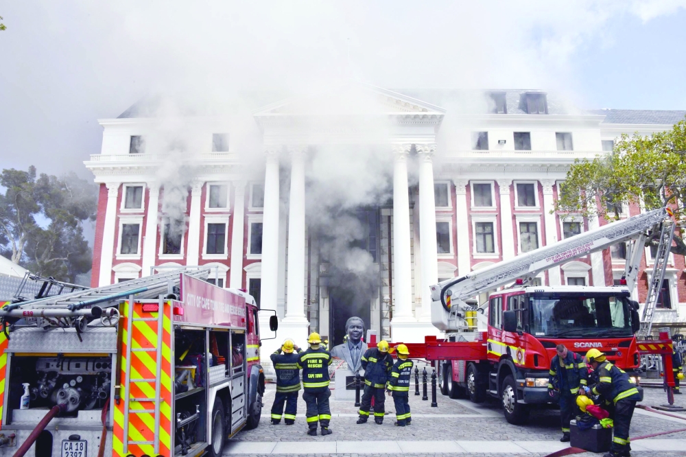 رجال الإطفاء يتصدون لحريق بمبنى برلمان جنوب أفريقيا
