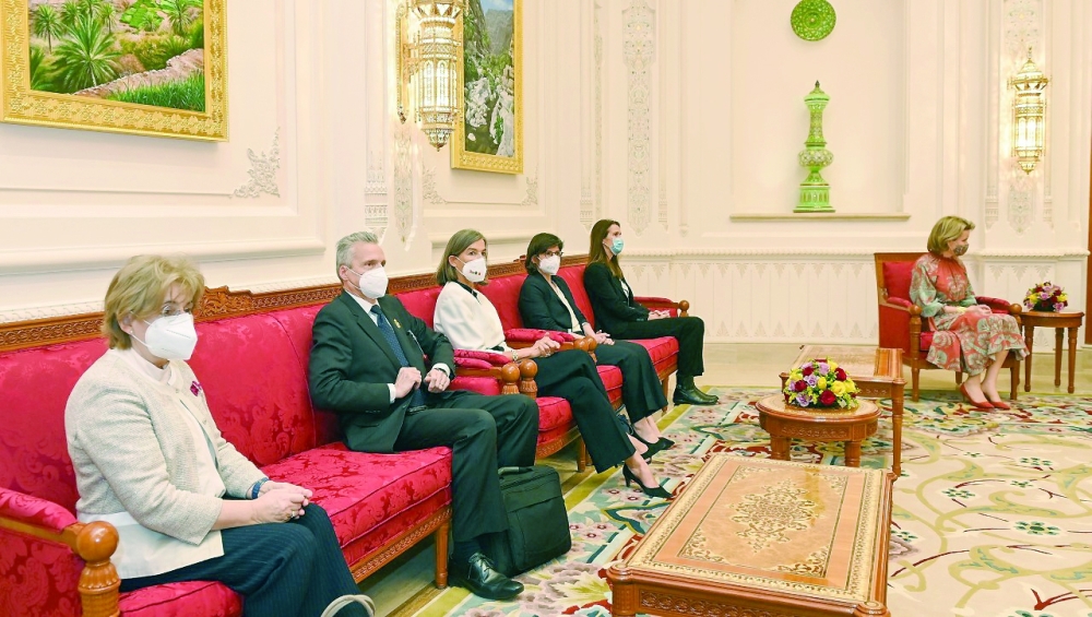 ويرافق صاحبا الجلالة ملك وملكة البلجيكيين وفد رسمي يضم معالي صوفي ويلميس نائبة رئيس الوزراء ووزيرة الخارجيـة و معالي تيني فان در سترايتــن وزيرة الطاقة ومعالي بول دي ويـت أمين عام ديوان جلالـة الملــــك و سعادة جوريون كورمـان مدير عام شؤون العلاقات الثنائيـة و سعادة السفيرة دومينيك مينيور سفيرة مملكة بلجيكا المعتمدة لدى سلطنة عُمان وسعادة السفيرة ماتشيلد فوستير سكرتيرة جلالة الملك وسعادة ليو بيتر مدير الشؤون الاقتصادية وعدد من المسؤولين البلجيكيين.