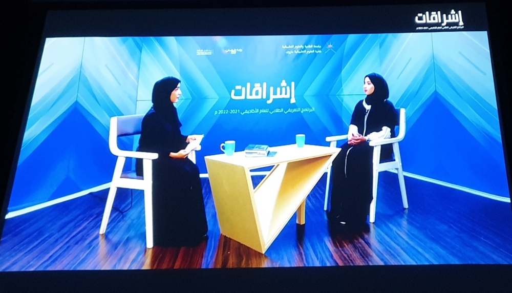 تلا ذلك لقاء مع الدكتورة سارة البهلانية رئيسة قسم اللغة الإنجليزية تحدثت فيه عن البرنامج التأسيسي وتقسيم الطلبة في مختلف المستويات بعدها تحدث أحمد العبري عضو هيئة التدريس بقسم المتطلبات العامة عن مقررات الرياضيات والحاسوب التي يدرسها الطالب في البرنامج التأسيسي، كما تحدث عن اختبار الرياضيات الذي سيعقد في أثناء البرنامج التعريفي، تلا ذلك لقاء مع الطالبة ريان الشريقية تحدثت عن الحياة الجامعية وكيفية استغلال الطالب لأوقات الفراغ وتنمية مواهبه المختلفة، كما تحدثت عن الفرص المختلفة التي يستطيع الطالب تنمية مهاراته المختلفة من خلالها. كما اقيم لقاء آخر مع الخريج عزان الزدجالي تحدث فيه عن حياته الجامعية سابقا وعن المناشط والفعاليات والمسابقات التي شارك فيها وحياته العملية بعد التخرج